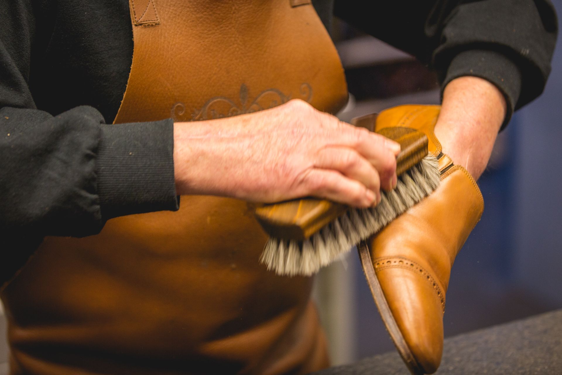- Onze schoenmakers werken met originele materialen van o.a. Van Bommel & Van Lier.